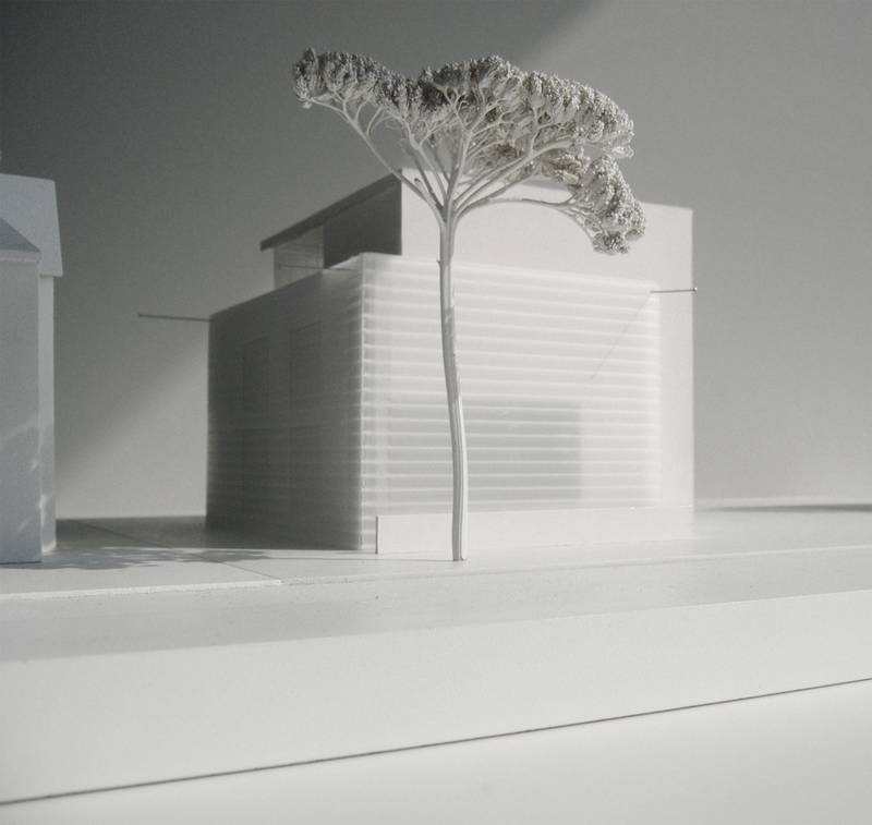 Der Entwurf eines Passivhauses mit Wohn- und Geschäftshausfunktion. Innovative Materialien und Gebäudetechnik sollen in modernster Architektur vereint werden. Auch bei der Tragwerksplanung und der Energietechnik wurde mit der Verwendung neuester Technologien geplant. Offene, barrierefreie Grundrisse von mindestens zwei Wohneinheiten mit Terrassen und einer Praxis geben Raum für zeitgemäßes Wohnen im städtischen Kontext. | Entwurf | 2009
